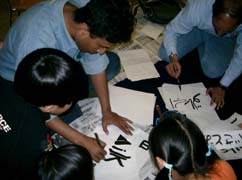 さあ、次は名前です。 日本在住7年の方から、日本に来て2週間という方もおられ ましたが、皆さん、とてもお上手で、びっくりしてしまいまし た。 |
